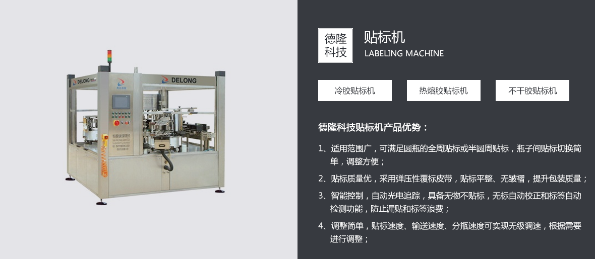 青島德隆自1995年創(chuàng)建以來,始終秉承創(chuàng)新與發(fā)展的優(yōu)良傳統(tǒng),依靠技術(shù)與服務(wù)贏得客戶的信賴與尊重。在貼標(biāo)機向?qū)W⒒⒍嘈袠I(yè)領(lǐng)域發(fā)展并成就了中國異型瓶貼標(biāo)市場的經(jīng)典之后,應(yīng)市場不斷變化的客戶需求,優(yōu)化產(chǎn)品結(jié)構(gòu),引進吸收國內(nèi)外的流體包裝設(shè)備理念,在貼標(biāo)機專業(yè)化地位穩(wěn)固的前提下,逐步實現(xiàn)關(guān)聯(lián)產(chǎn)品的多元化。   目前,青島德隆已經(jīng)成為國內(nèi)能同時滿足圓瓶、方瓶、扁瓶、錐度瓶、球形瓶、定位瓶等瓶型的高、中、低速多功能冷(熱)膠貼標(biāo)領(lǐng)域的廠家。隨著碼/卸(瓶/罐)垛機、沖瓶機、灌裝擠(旋/壓)蓋機、全自動紙箱包箱設(shè)備、排序機、機器人碼/卸垛設(shè)備、激光噴碼機的運行成功,一個真正的流體包裝設(shè)備方案解決專家已經(jīng)成熟。   青島德隆集團的···......[查看詳情]